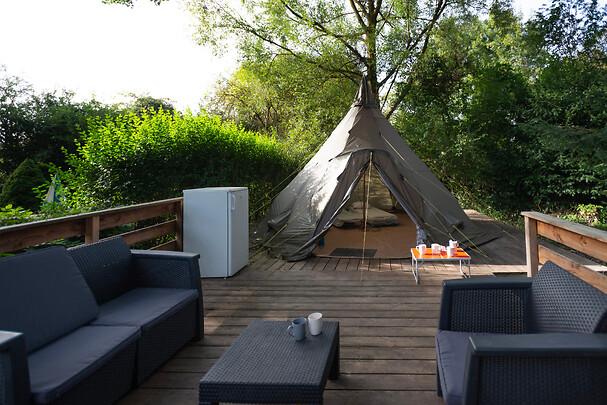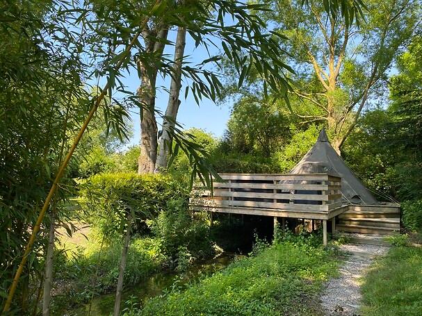 Nuit en tipi sur pilotis : dormir SUR le ruisseau, en lisière de forêt !