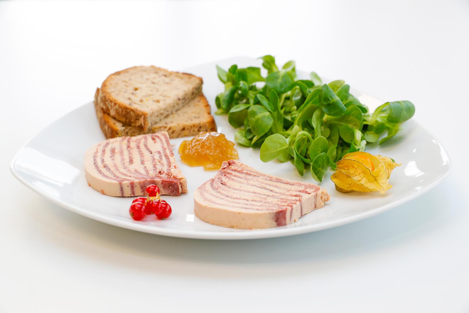 Une alternance de zébrures beiges et rose foncé, un délicat assemblage de foie gras et de langue fumée de boeuf. Ce délice né dans les Années folles s’est imposé au fil des ans comme une spécialité incontournable de notre gastronomie régionale. La langue de bœuf 100 % française doit être fumée une à deux heures puis cuite au court-bouillon entre quatre et cinq heures au terme desquelles elle aura perdu 60 % de son poids. Une fois refroidie, elle est coupée en fines lamelles. L’artisan tapissera alors tout le moule à la poche à douille de mousse de foie de canard légèrement aromatisée au cognac. Il alternera ensuite dix fois langue et foie gras avant de la mettre au réfrigérateur pendant douze heures.