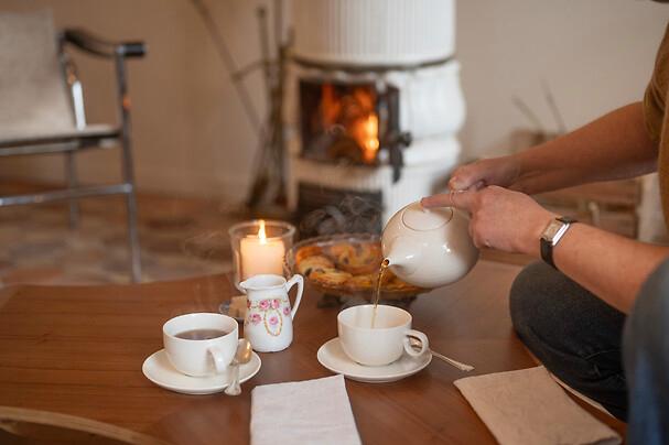 Virginie vous prépare un petit-déjeuner gourmand : café, thé ou chocolat fumants, pain d’épices, cakes de saison, brioche façon pain perdu, madeleines, fruits du verger et un œuf à la coque tout juste ramassé.